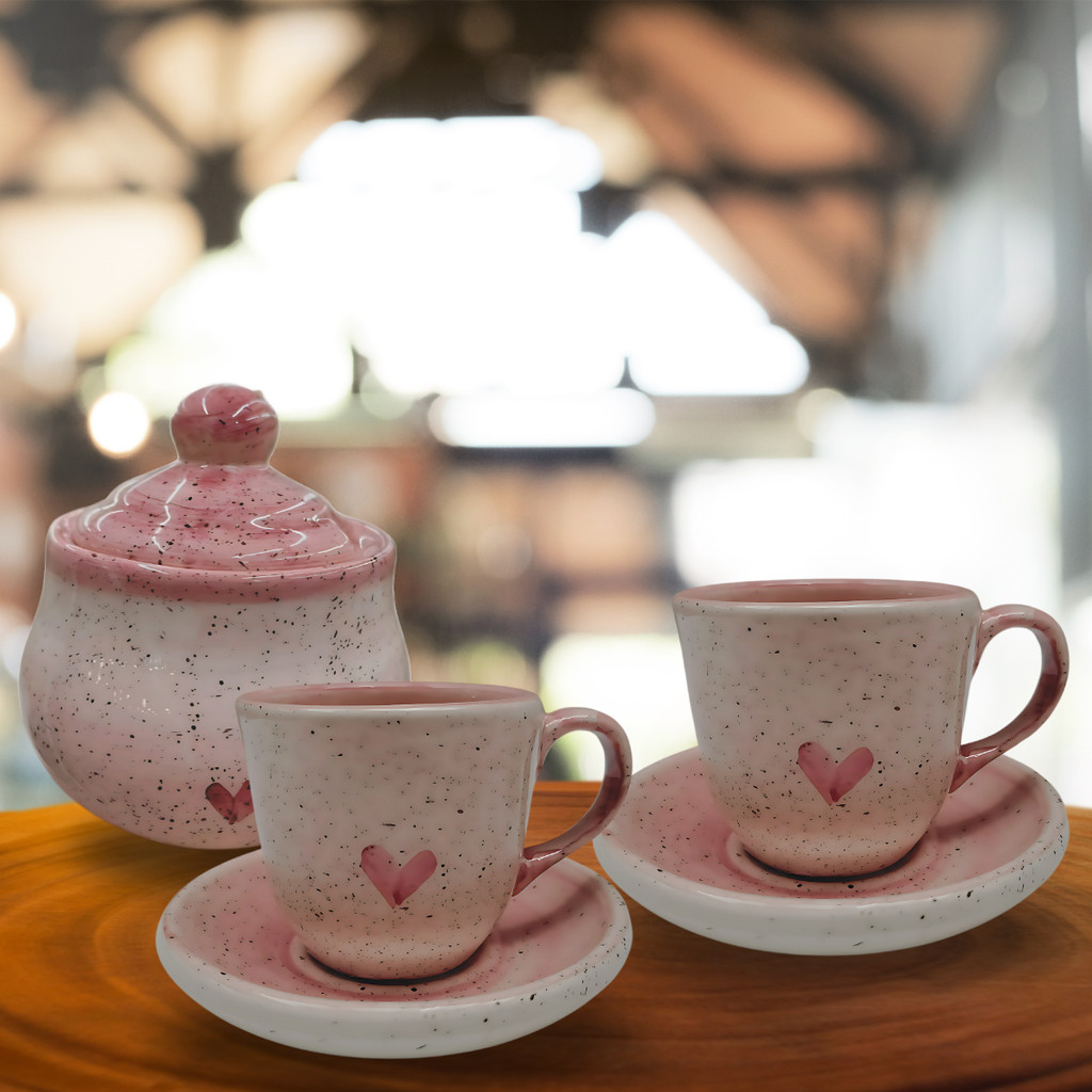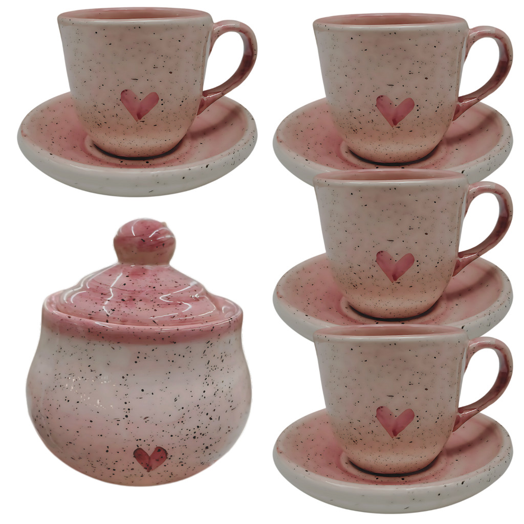 Compre 4 Xícaras De Café 60ml Com Pires E Açucareiro Cerâmica Rosa na Shopee Brasil! Kit para Café – Elegância e Conforto na Sua Rotina