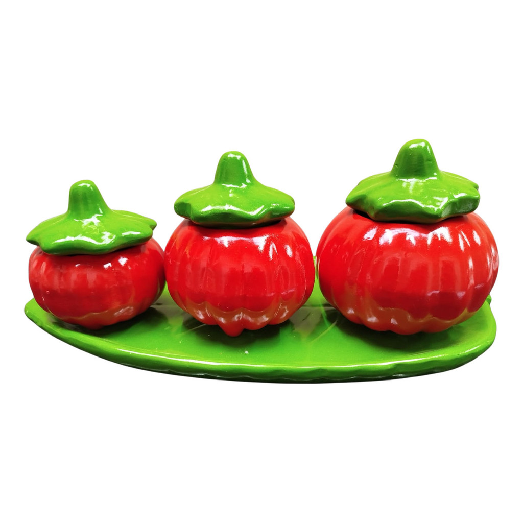 Compre Abóboras Vermelhas com Folha Verde Decoração em Cerâmica na Shopee Brasil! Trio de Morangas/Abóboras de Cerâmica com Tampa – Pintadas à Mão