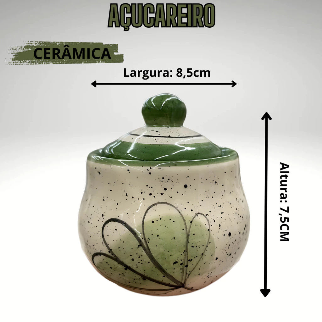Açucareiro Redondo Pintado á Mão de Cerâmica – Verde