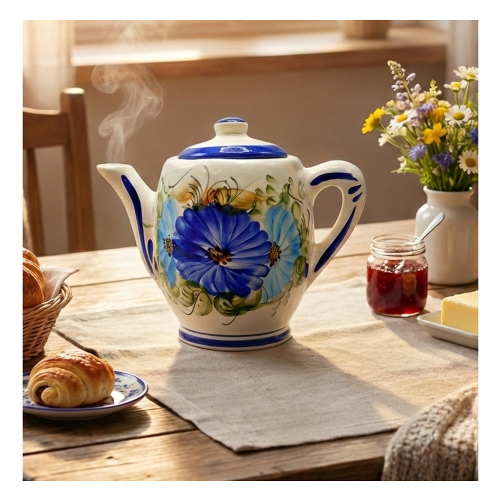 Encante sua copa ou cozinha com este lindo bule em cerâmica esmaltada, cuidadosamente pintado à mão, que une charme, elegância e funcionalidade. Seu design vintage traz um toque clássico e acolhedor à decoração, ideal para quem valoriza beleza nos detalhes.