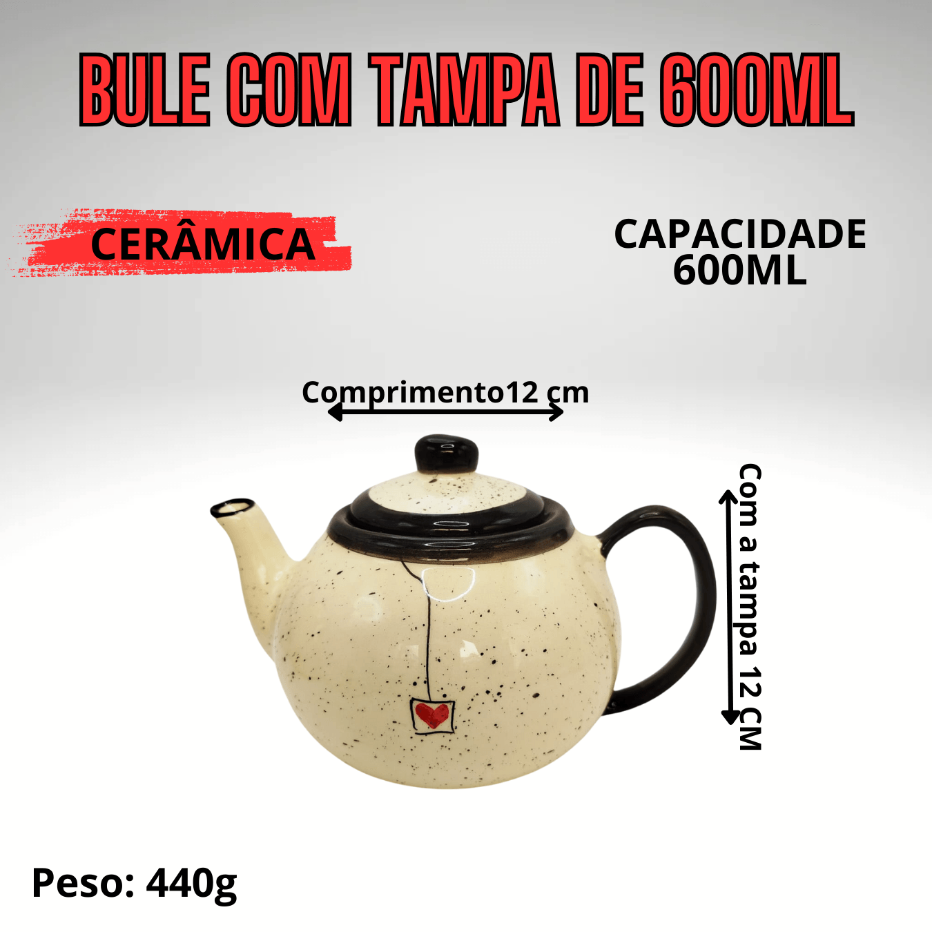 Altura sem tampa: 12cm