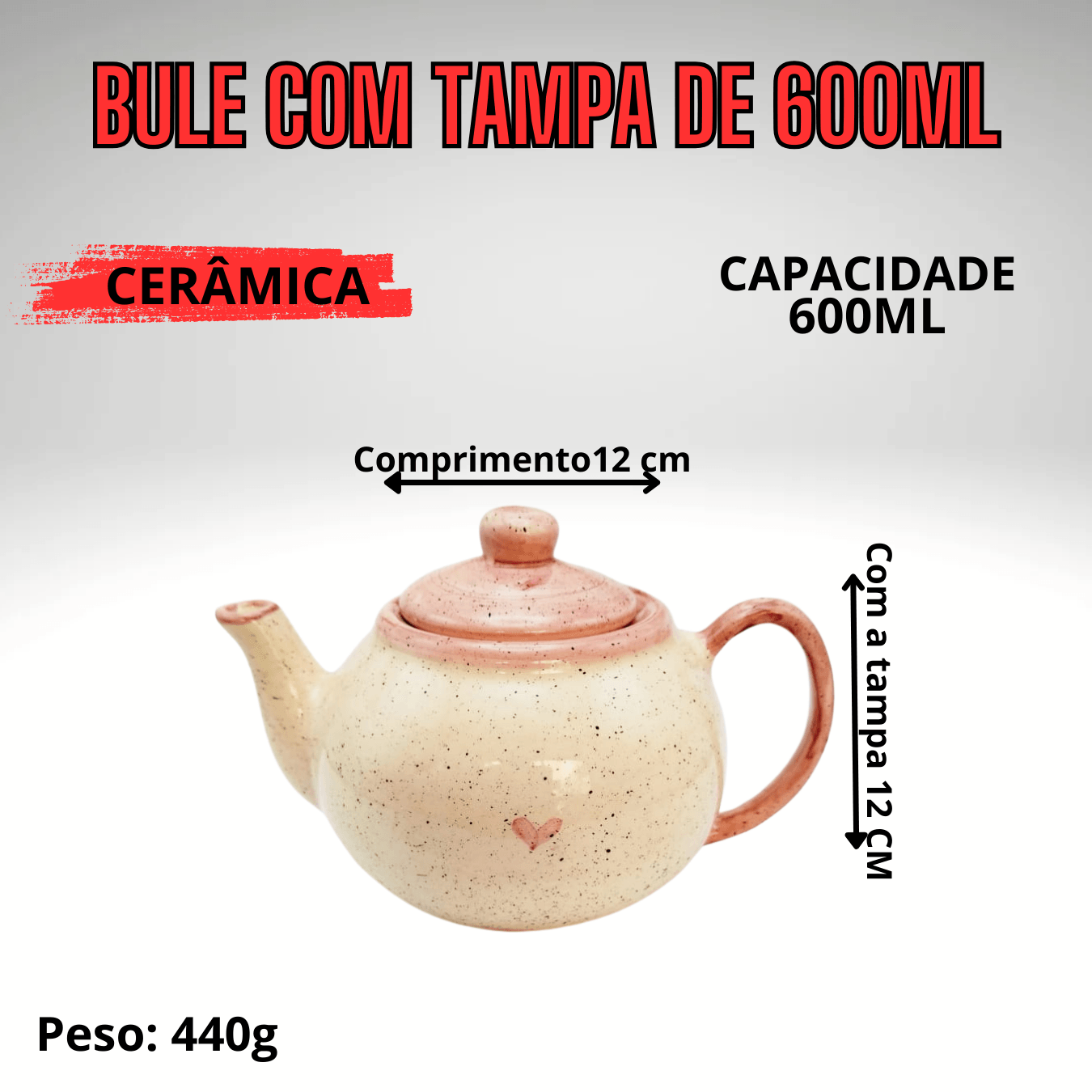 Altura sem tampa: 12cm