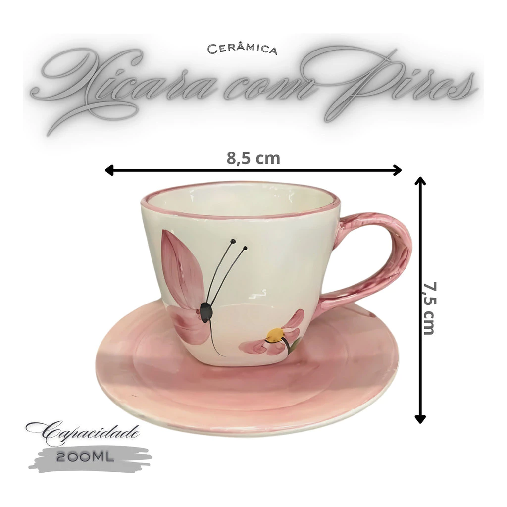 Chaleira Açucareiro 4 Xícaras Com Pires Para Servir Chá Borboleta Cerâmica