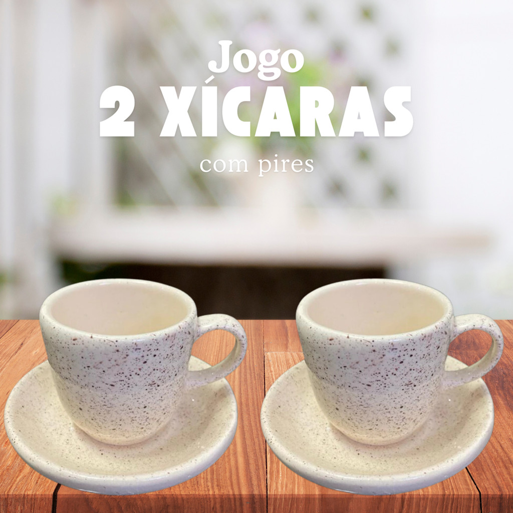 Compre Conjunto 4 peças 2 Xícaras e 2 Pires Café Chapiscado Cerâmica Louça Pintado á Mão na Shopee Brasil! Conjunto 2 Xícaras Café Chapiscado Cerâmica Pintado á Mão