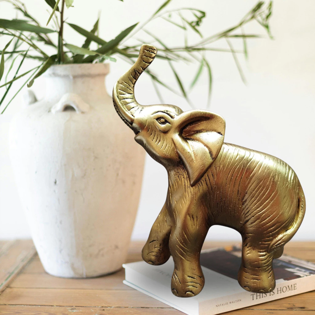 Elefante Decorativo Dourado – Elegância e Significado para Sua Decoração Adicione sofisticação e energia positiva ao seu ambiente com o Elefante Decorativo Dourado. Esta peça charmosa valoriza a decoração com um toque de modernidade e brilho, ideal para salas, escritórios, halls e estantes. Na simbologia, o elefante representa sorte, prosperidade, paciência, sabedoria, longevidade, poder e benevolência — trazendo boas energias e um significado especial ao seu espaço. Detalhes do Produto: Material: Gesso de alta qualidade Acabamento: Pintura dourada com brilho e acabamento fino Design: Escultura rica em detalhes, que valoriza o ambiente Dimensões: Altura: 19 cm Largura: 16 cm Peso: 450 g Leve para sua casa uma peça que une beleza, cultura e boas vibrações, perfeita para presentear ou transformar sua decoração.