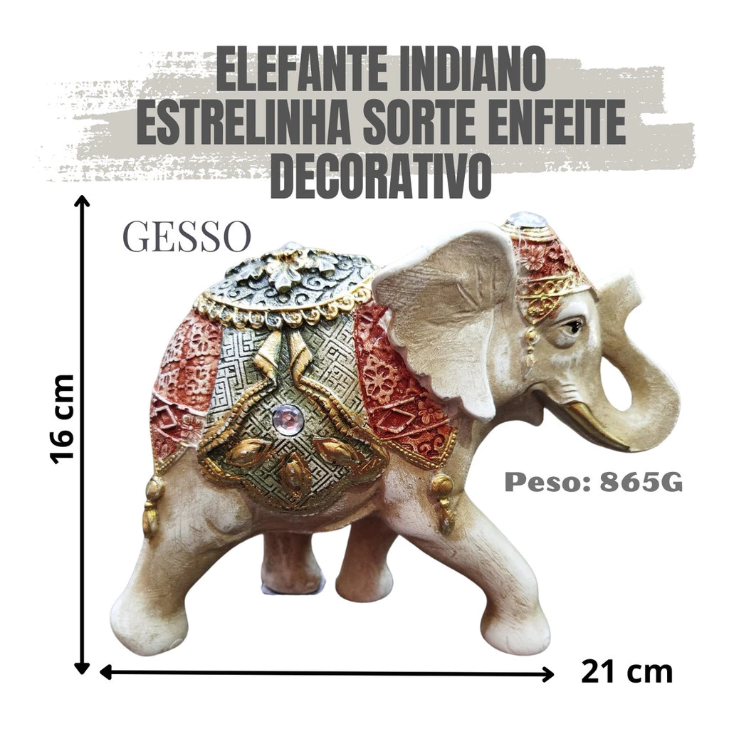 Elefante Indiano Estrelinha – Símbolo de Sorte e Proteção | Enfeite Decorativo (Cores Variadas) Adicione um toque de encanto e boas energias ao seu espaço com o Elefante Indiano Estrelinha. Feito à mão com gesso de alta qualidade, cada peça é única, com pintura detalhada que pode apresentar variações nas tonalidades, o que torna cada elefante ainda mais especial. Disponível em cores variadas, ele traz uma aura vibrante e cheia de significados para a sua decoração. Além de ser uma peça decorativa encantadora, o elefante é um poderoso símbolo de sabedoria, proteção, boa sorte e fertilidade. Tradicionalmente, acredita-se que ele atrai boas energias e protege a casa de qualquer mal. Com um design delicado e encantador, este elefante possui uma estrelinha na sua base, tornando-o ainda mais único e especial para sua decoração. A peça também conta com uma proteção na base para evitar riscos e danos aos móveis. Características do Produto: Material: Gesso de alta qualidade, pintado à mão Design exclusivo: Elefante com estrela, cheio de detalhes e simbolismos Variedade de cores: Cada peça é pintada manualmente, podendo haver pequenas variações nas tonalidades Proteção na base: Evita riscos e danos nos móveis Curiosidade: O elefante é considerado um símbolo de poder, sabedoria, proteção, fertilidade e boa sorte. Deixe essa peça encantadora atrair energias positivas para o seu lar! Especificações: Peso: 865 g Altura: 16 cm Largura: 21 cm