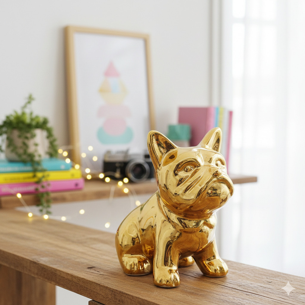 Compre Enfeite Decorativo Cachorro Bulldog Dourado 13cm em Cerâmica – Luxo e Charme na Shopee Brasil! O enfeite de Cachorro Bulldog Dourado em Cerâmica é aquele detalhe que transforma qualquer ambiente. Com acabamento brilhante e design moderno, ele traz charme, personalidade e um toque luxuoso para salas, quartos, escritórios ou aparadores. Ideal também para presentear quem ama decoração e pets.