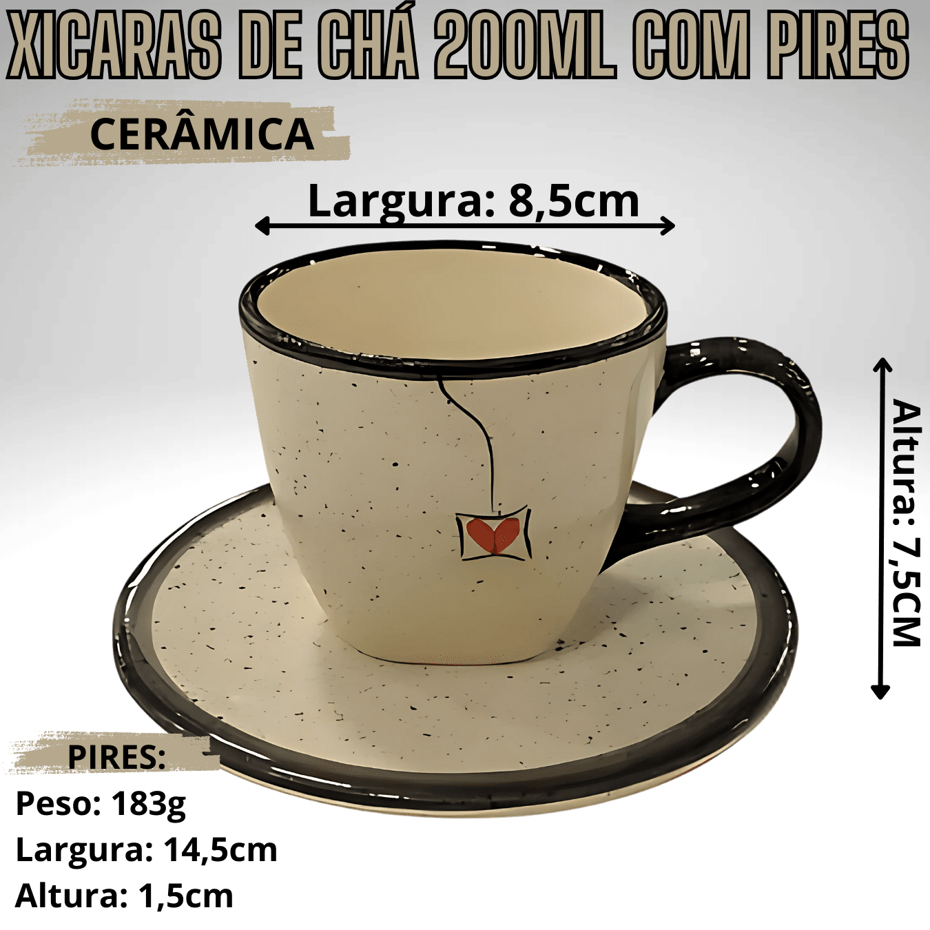 Características: Conjunto completo com xícaras e pires Design clássico e elegante Perfeito para momentos especiais ou para uso diário Ideal para servir chá, café ou outras bebidas quentes Surpreenda seus convidados com esse conjunto de chá que une estilo e sofisticação, tornando qualquer momento ainda mais especial! Medidas da Chaleira: Capacidade: 1200ml Altura com tampa: 20cm Largura da boca: 8,5cm Largura da base: 13,5cm Tampa: 7cm Peso: 634g Medidas das Xícaras: Capacidade: 200ml Altura: 7,5cm Largura da boca: 8,5cm Largura da base: 4,5cm Peso: 214g Medidas dos Pires: Peso: 183g Largura: 14,5cm Altura: 1,3cm jogo de xicaras; jogo de xicaras para cafe; xicaras para cafe; xicaras para cafe jogo; xicaras; jogo de chá;