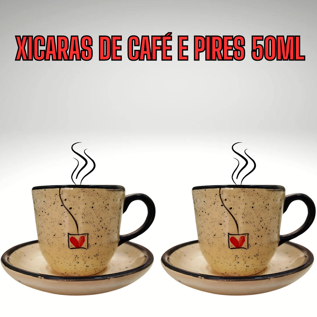 2 Xicaras de café e pires com capacidade de 50ml;