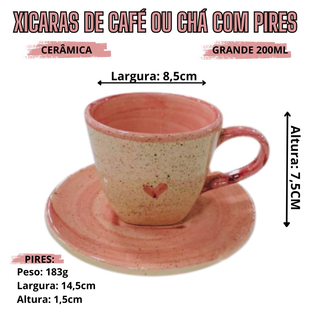 Cada xícara e pires possui um acabamento impecável, pintados a mão, transformam a beleza em funcionalidade. O tamanho ideal das xícaras (200ml) proporciona o equilíbrio perfeito entre estética e praticidade, garantindo uma experiência de chá agradável e sofisticada.