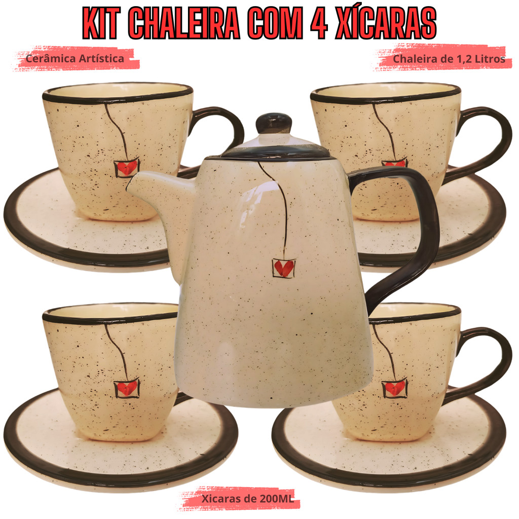 Compre Jogo de chá com 4 Xícaras para café 200ml + 1 Chaleira de 1,2L cerâmica louça pintados a mão na Shopee Brasil! Elegância e sofisticação para a hora do chá! Este encantador conjunto de chá com xícaras e pires em Cerâmica artistica é perfeito para quem aprecia momentos especiais e busca enriquecer suas reuniões com amigos e familiares. Feito com cerâmica artistica, possuem um design atemporal, esse conjunto transforma qualquer ocasião em uma experiência única.