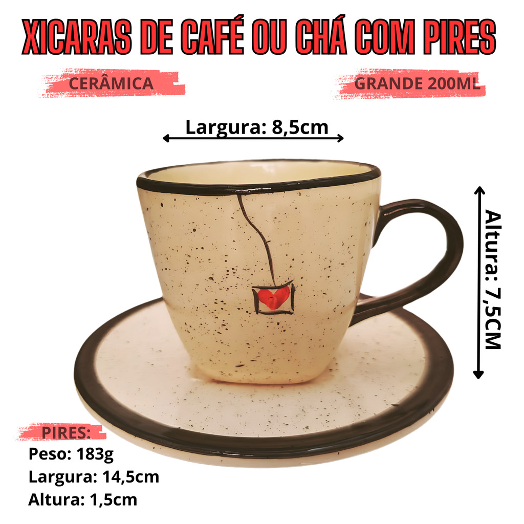 Cada xícara e pires possui um acabamento impecável, pintados a mão, transformam a beleza em funcionalidade. O tamanho ideal das xícaras (200ml) proporciona o equilíbrio perfeito entre estética e praticidade, garantindo uma experiência de chá agradável e sofisticada.