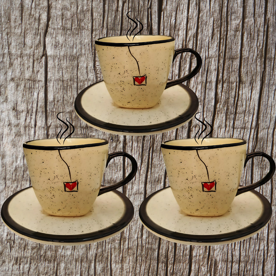 Jogo de Xícaras e Pires de 200ml feitas em Cerâmica Pintadas a Mão Diversos Modelos