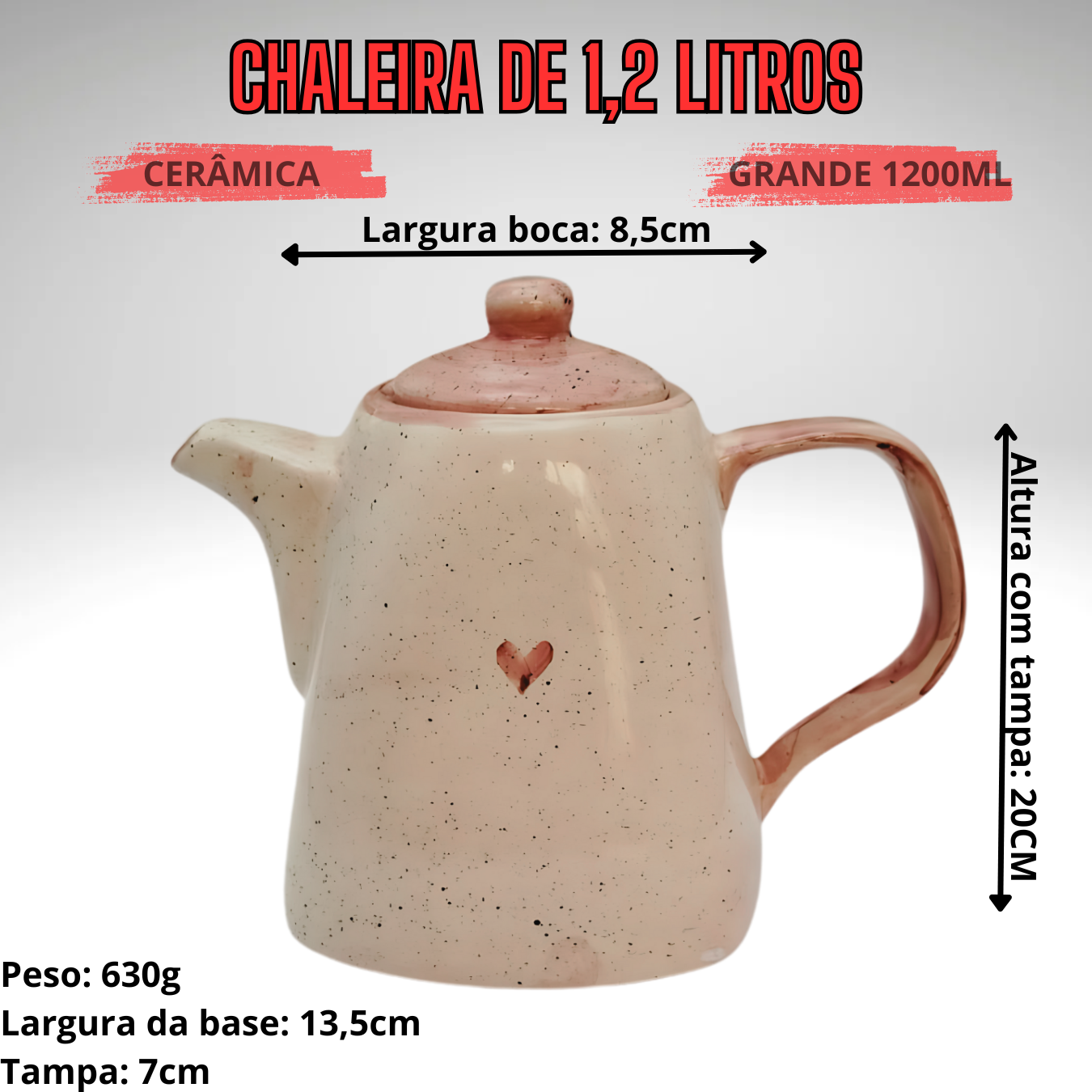 Altura com tampa: 20cm