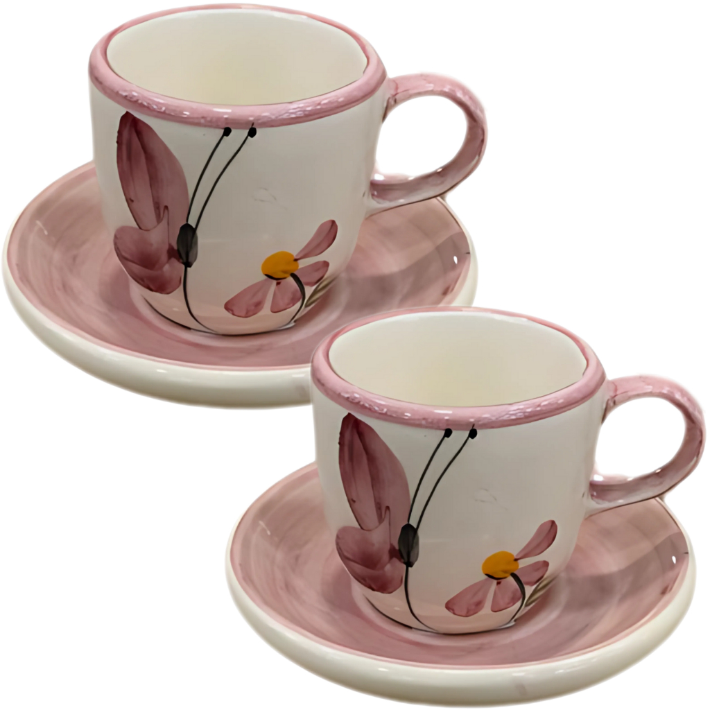 Compre Jogo de Xicaras para Café sedo 2 xícaras e 2 pires em Cerâmica 4 peças Pintado a Mão 75ml na Shopee Brasil! Conjunto de Café em Cerâmica – 2 Xícaras + 2 Pires