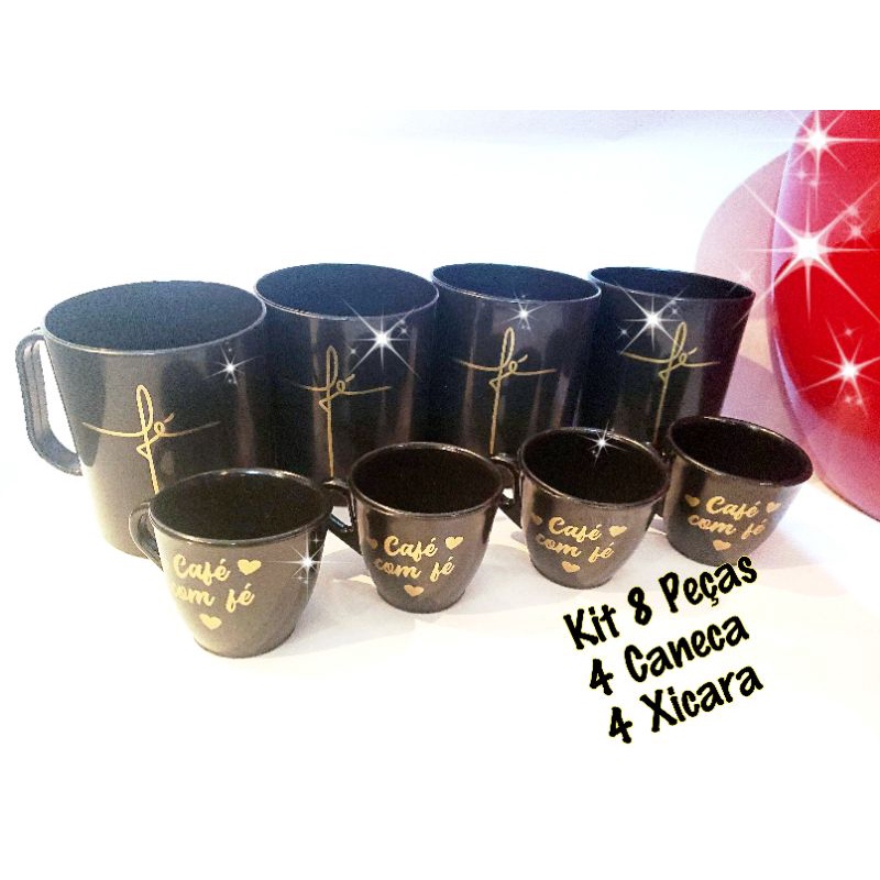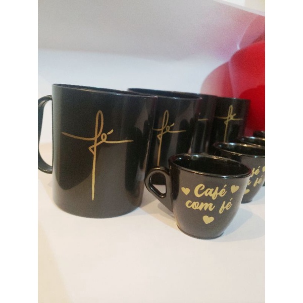 Compre Kit 4 Caneca Fé 400ml + 4 Xicaras Café com Fé 70ml na Shopee Brasil! Kit com 4 Canecas Plásticas 400ml Personalizadas Fé E 4 Xicaras redondas café com Fé 70ml.