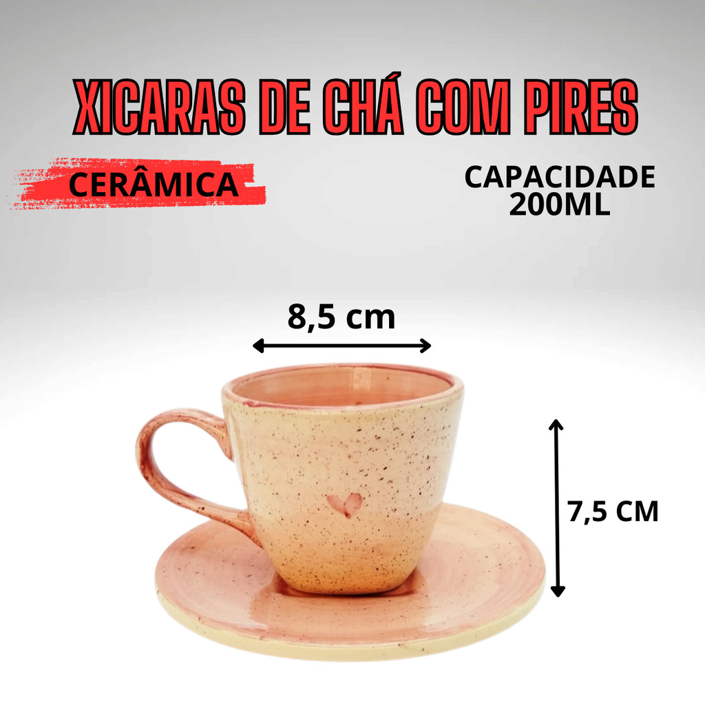 Compre Kit 4 Xícaras de Café ou Chá com Pires em Cerâmica Louça Pintado a Mão 200ML na Shopee Brasil! Transforme sua Rotina de Chá com Sofisticação e Charme!