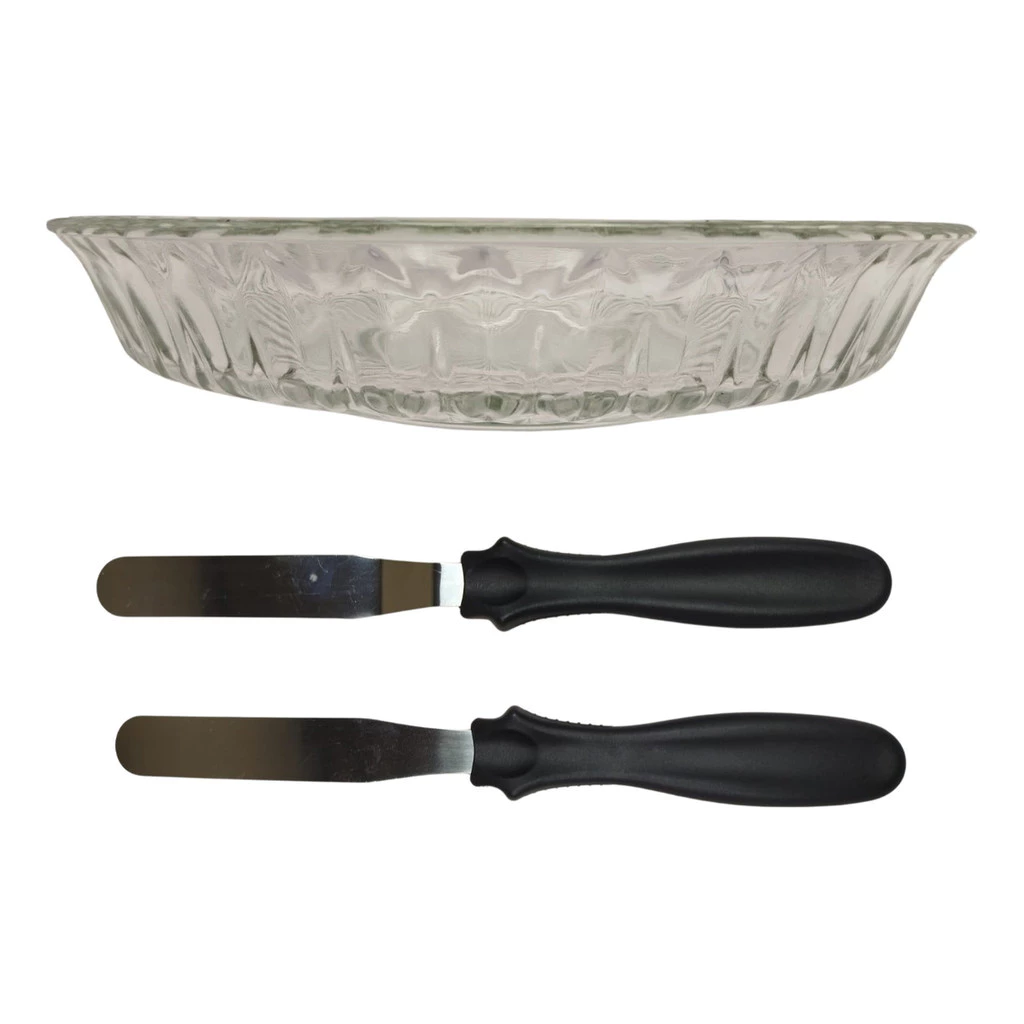 Kit Boleira de Vidro Decorado com Borda (30cm) + 2 Espátulas em Inox – Elegância e Praticidade na Sua Confeitaria! Transforme a apresentação e o preparo das suas sobremesas com este kit completo e sofisticado! Ideal para confeiteiros profissionais, iniciantes ou amantes da confeitaria que valorizam beleza, funcionalidade e qualidade. O que você vai receber: 1 Prato para bolo e doces em vidro decorado com borda, perfeito para servir com charme e elegância. 2 Espátulas confeccionadas em aço inoxidável com cabo de plástico resistente, ideais para alisar, decorar e aplicar coberturas com precisão. Benefícios do Kit: Excelente para confeitar bolos, tortas e sobremesas Materiais duráveis, higiênicos e fáceis de limpar Visual sofisticado, ideal para servir diretamente à mesa Praticidade aliada ao acabamento profissional Conteúdo do Kit: 1 Prato de vidro decorado com borda Diâmetro: 30 cm Altura: 5 cm 2 Espátulas em aço inox com cabo plástico Comprimento: 22 cm cada Leve para sua cozinha um toque de elegância e eficiência com este kit indispensável!