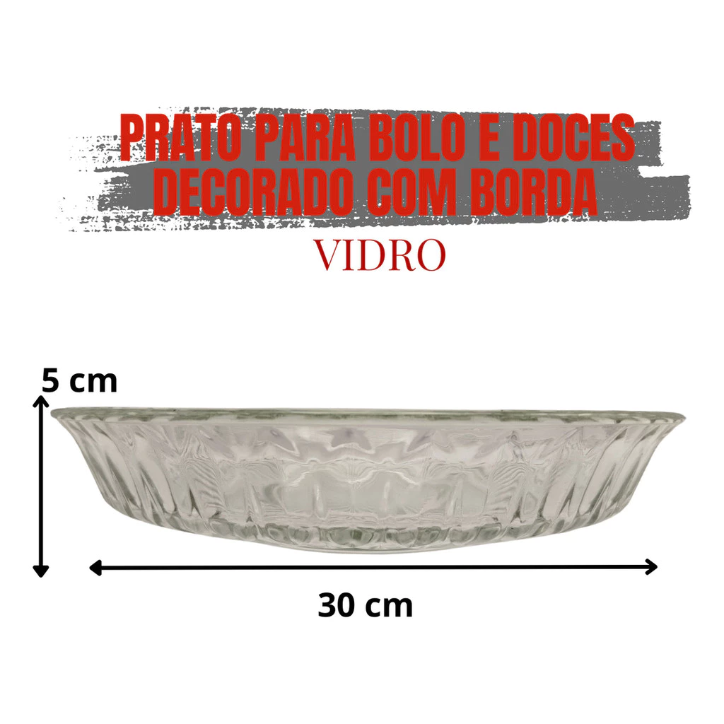 Prato para Bolo e Doces em Vidro Decorado com Borda – 30cm Sirva suas sobremesas com charme e sofisticação! Este prato em vidro decorado é ideal para bolos, tortas, doces e outras delícias, valorizando a apresentação na mesa com elegância. Com design refinado e borda elevada, oferece mais segurança ao servir, evitando que os alimentos escorreguem. Um item indispensável para quem gosta de caprichar tanto no sabor quanto na apresentação. Características do Produto: Material: Vidro resistente e de alta qualidade Cor: Transparente Design decorado com borda elegante Ideal para servir sobremesas com estilo e segurança Dimensões: Diâmetro: 30 cm Altura: 5 cm Conteúdo da Embalagem: 1 Prato para bolo e doces Leve mais beleza e praticidade para suas ocasiões especiais com este prato decorativo versátil e funcional!